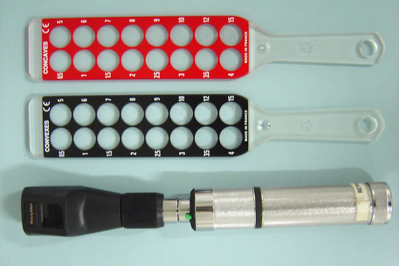 Esse exame tem sido usado para definir o estado refrativo normal, patológico e induzido cirurgicamente nos olhos de cães e outras espécies domésticas. O método consiste em observar o movimento da faixa, refletido no fundo do olho, através da pupila; esses movimentos são neutralizados por lentes positivas ou negativas colocadas à frente do olho examinado.